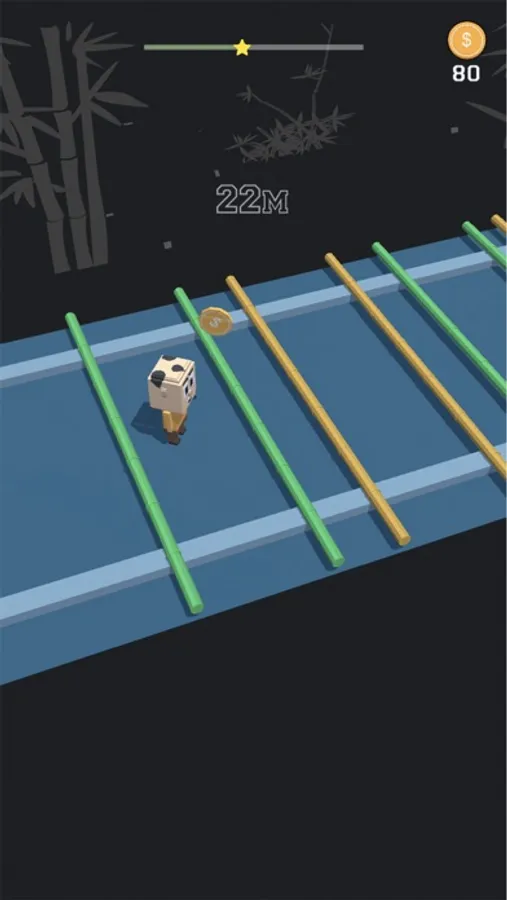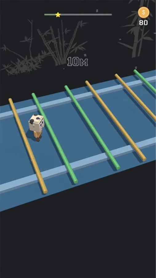Touch down and hold a little bit to increase jump force then release to jump, avoid jump on the bamboo poles!