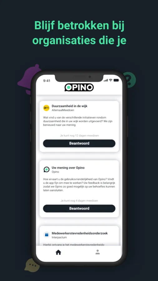 Met Opino kun jij organisaties helpen met jouw expertise en betrokkenheid. Neem deel aan peilingen, discussies en ontvang informatie van organisaties die jij een warm hart toedraagt.