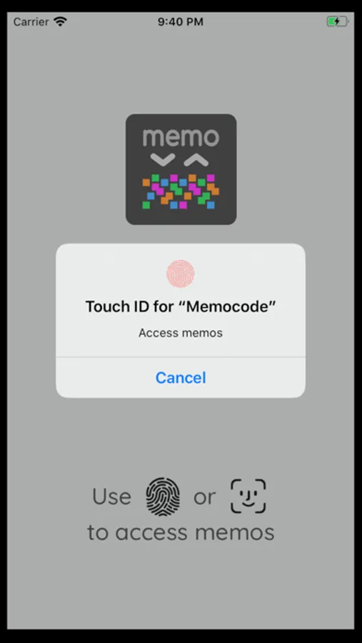 - After a key has been set, FaceId or TouchId is used to access the memos