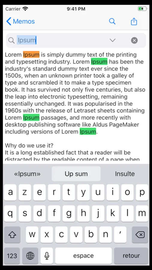 - A memo can be shared as a ciphered file ( air-drop, mail, file storage )