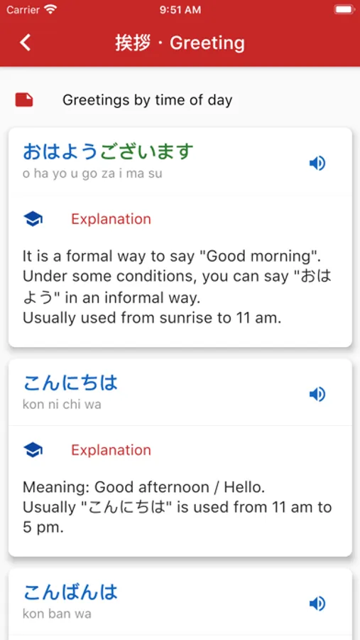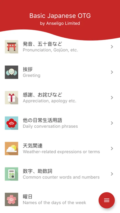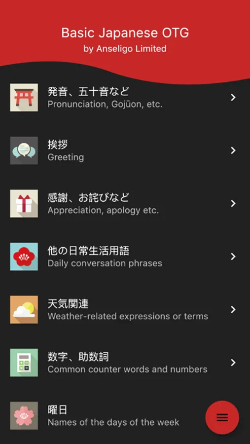 This is an app that teaches basic knowledge of Japanese language. It is mainly for beginners in Japanese learning. This app is a short and easy collection of basic greetings, phrases, etc. Recommended for beginners to learn Japanese.