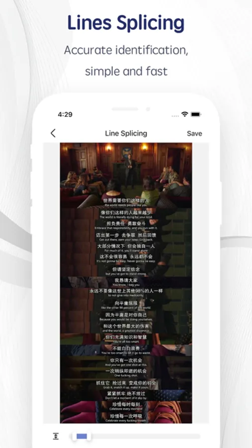 3. One click splicing of lines and subtitles, with adjustable display range.