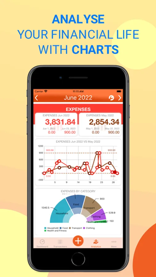 Identify serious spending issues and analyze your personal finances in a comprehensive way using charts.