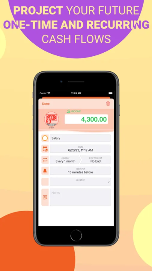 Project your future one-time and recurring cash flows and be aware of your monthly budget.