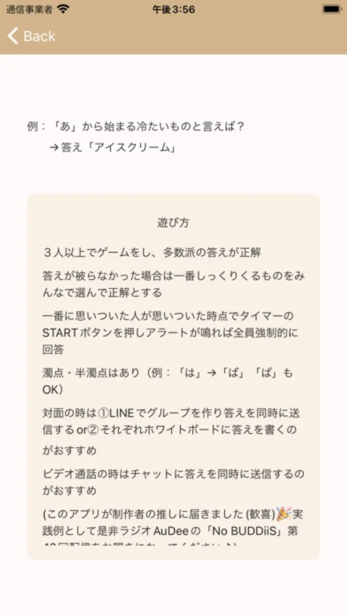 のように問題が出ます。複数人で答えを出し合い、多数派または一番常識的な答えが正解です。約5000通りの問題があります。