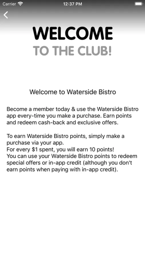 Earn points for every purchase at Waterside Bistro and start enjoying the benefits of our membership program today. We tailor rewards just for you. Choose when and how to make the most of our promotions.