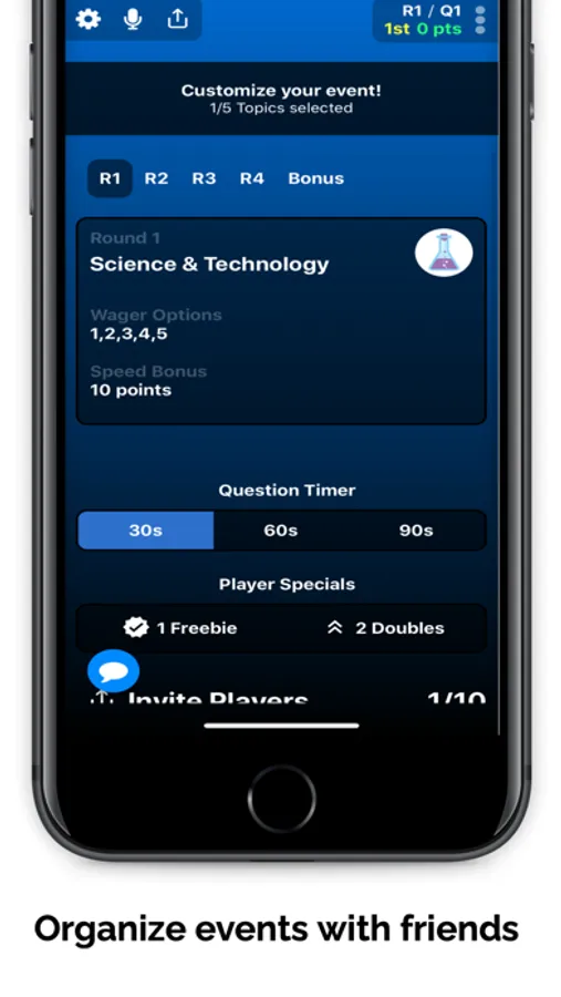 You and 7 of your closest friends can hop into an event anytime for free. You'll select topics, customize scoring, and reward specials. Playing remotely? Join the group video chat to brag to everyone about how much useless knowledge you have.