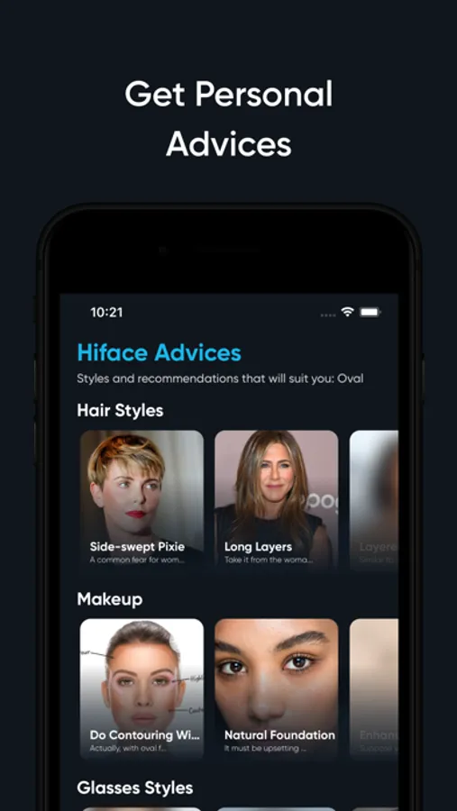 Discover your perfect look with Hiface, a unique app that uses advanced AI technology to determine your face shape and provide personalized recommendations for hairstyles, makeup, glasses, and fashion. Hiface is your go-to style assistant that helps you elevate your look and feel more confident in your appearance.