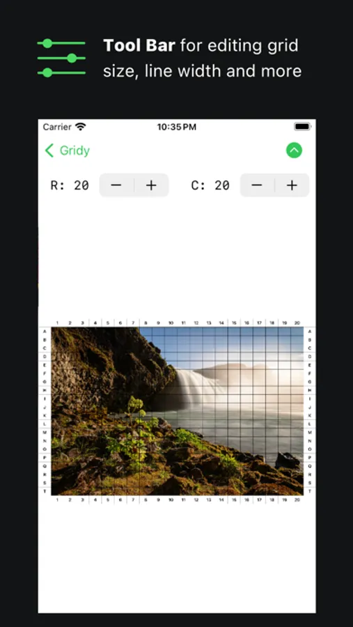 • Customization of grid row & column count, grid line color and grid line width