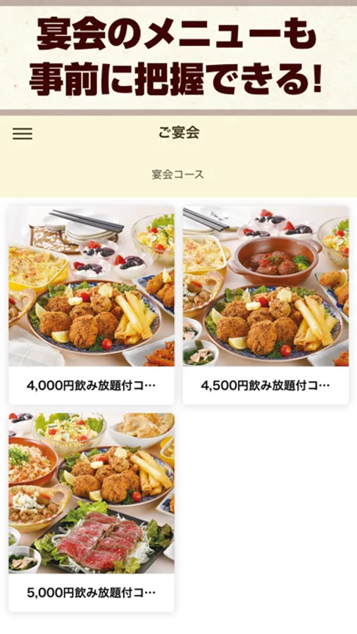 ボリューム満点のご宴会メニューです。お腹いっぱい間違いなし