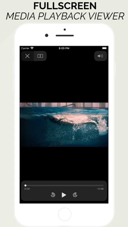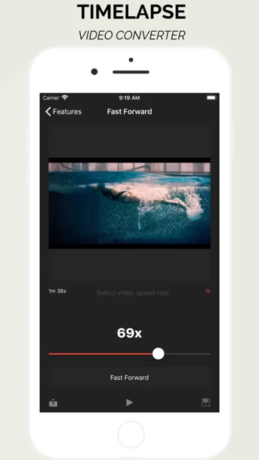 The videos you playback with Fast Forward Videos can be viewed in full-screen viewer. Save the videos you playback using this app directly to your camera roll so you can discover them at any time and easily share the ones you like with others.