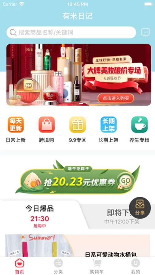 每天不同产品限时限量折扣秒杀,365天每天都有新品。