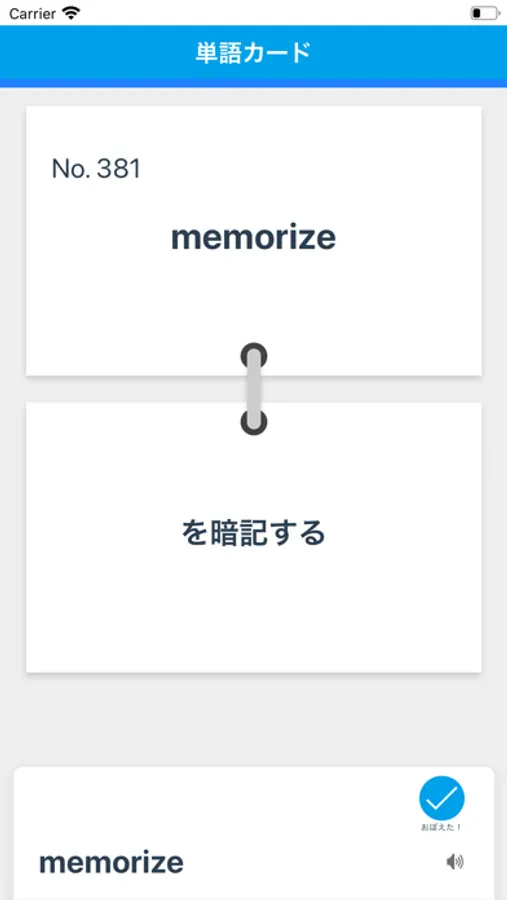 「単語カード」機能を使って,単語集に収録されている英単語を「日・英」「英・日」の双方向から学習できます。
