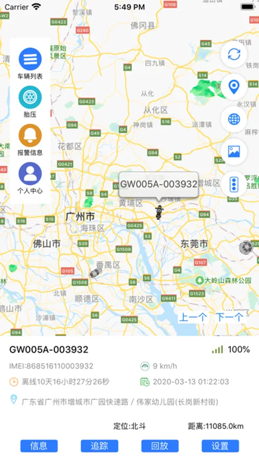 车在这儿是一款为GPS定位器提供显示信息的app。可以查看到车辆轨迹,路程。可以设置报警等功能。