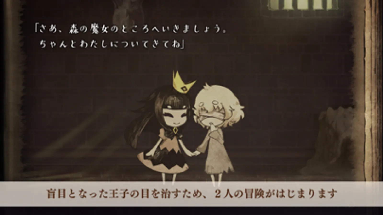 王子を魔女のもとへ連れていき、彼の目を元通りに治してもらうために、手を繋いだ2人の大冒険が始まります。