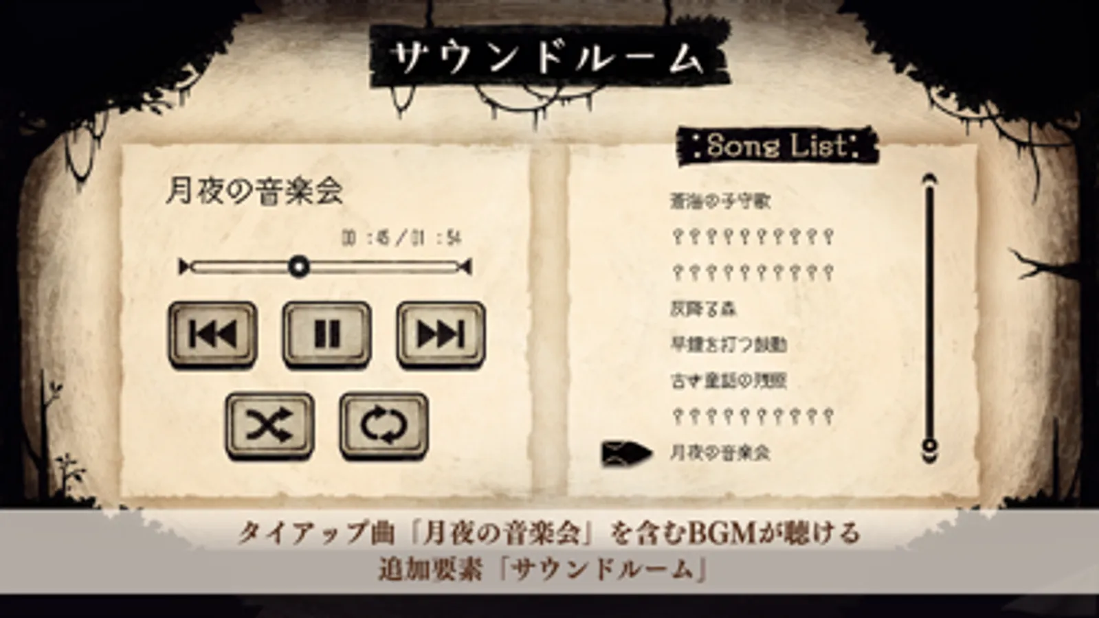 志方あきこ氏とのタイアップ曲『月夜の音楽会』を含む、ゲーム内BGM全16曲が視聴できます。