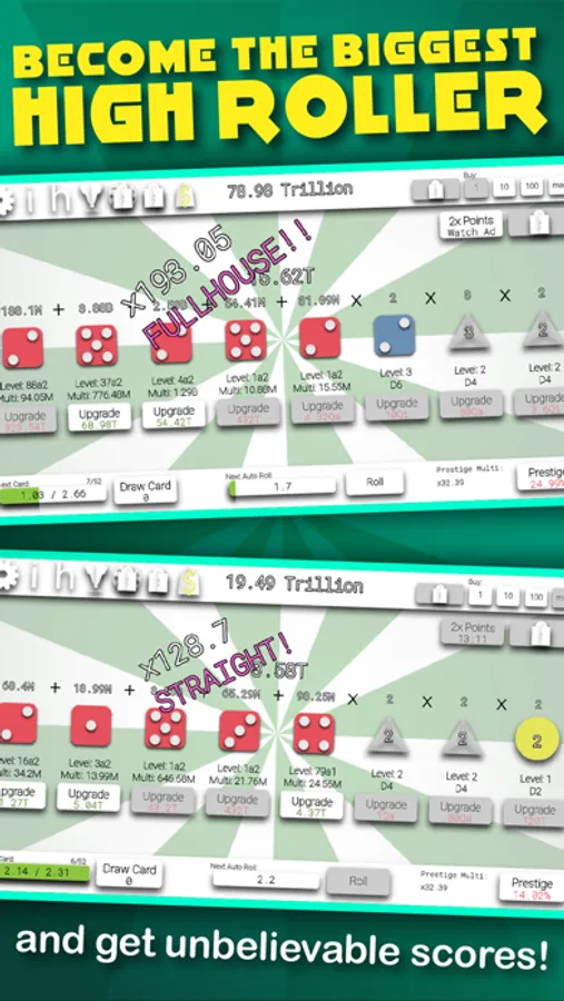 • Earn crazy dice combos to multiply your earnings