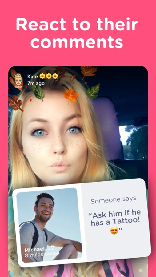Discovering new friends is fun again! Let your friends swipe for you, directly from your story, and give you advice.