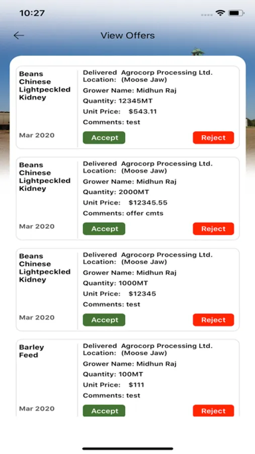 Farmers are able place orders on products, book offers from Mills as well as keep track of their transaction history.
