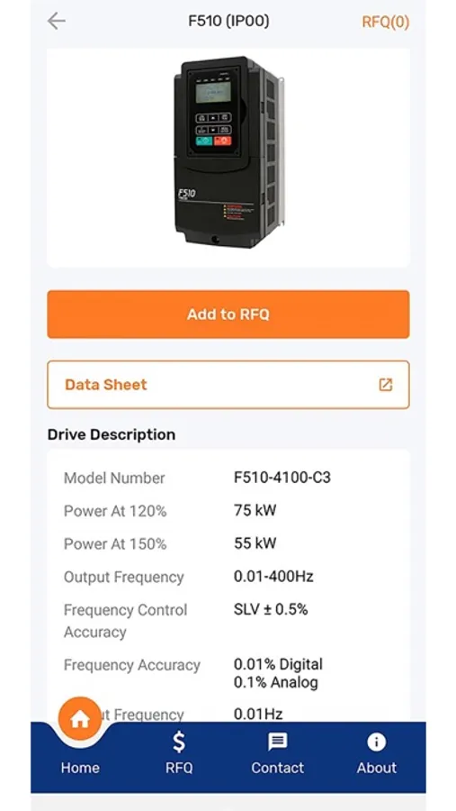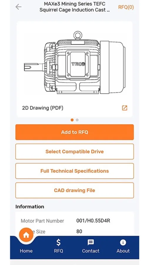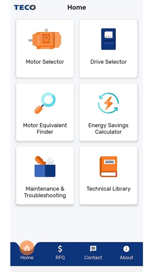 This app was built to answer the most commonly asked technical questions about TECO flagship MAXe3 and AFJE product ranges up to 450kW. It contains a technical library, installation data, virtual slide guide, electrical and mechanical data, and an energy savings calculator. It provides VFD sizing to suit a chosen motor and application. Finally, you can also create a product basket and send a direct enquiry to TECO sales.