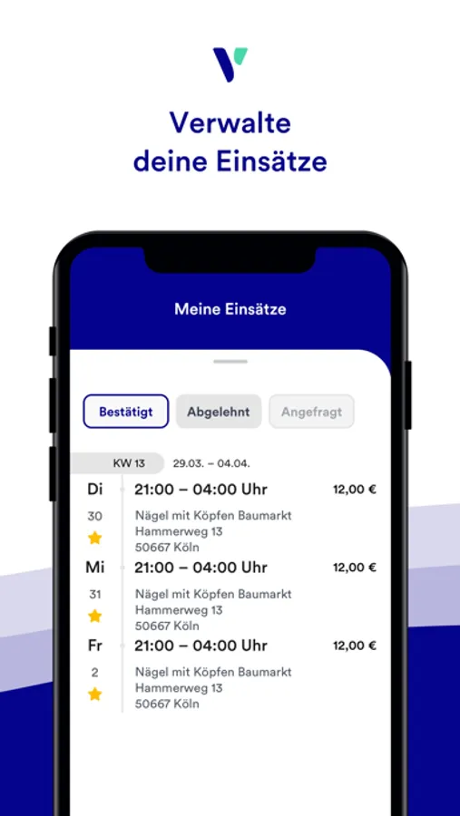 That means: The offer of student jobs in the app, your personal schedule and the corresponding information are always up to date. With jobvalley, you earn money without stress.