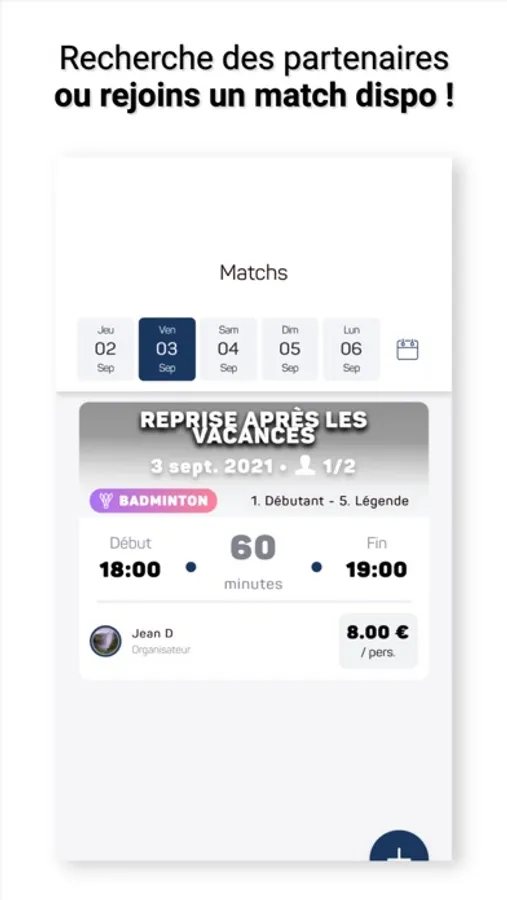 Consulte les matchs proposés par les autres joueurs. Dès que tu as trouvé le match qu'il te faut, inscris-toi !