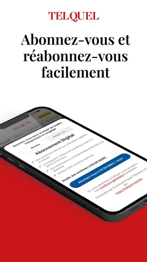 Téléchargez la nouvelle application TelQuel pour accéder à l'ensemble notre contenu premium et gratuit, facilement sur votre téléphone. Bénéficiez de l'offre de lancement avec 7 jours d'abonnement offert.