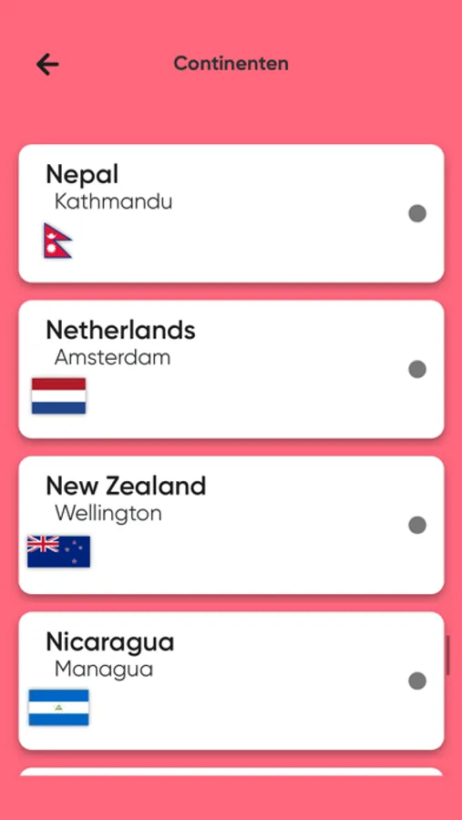 Quiz - Oefen de landen, is opgedeeld in verschillende onderdelen: