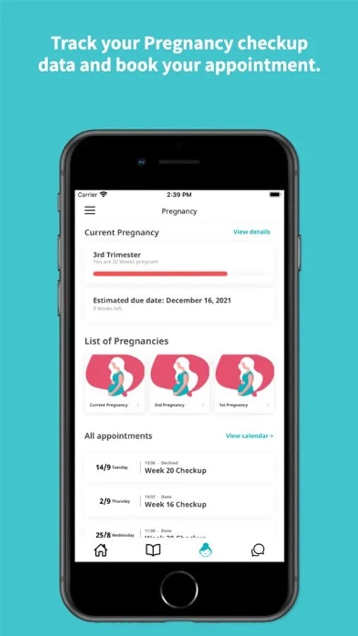 E-MCH is a mobile application for pregnant women where they can access their personal data, pregnancy health references, checkup records, baby development growth charts, book an appointment, and communicate with doctors.