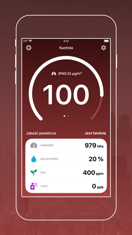 Czujnik sensAir mierzy główne parametry powietrza t.j. PM 2.5, PM 10, dwutlenek węgla (czad), Lotne Związki Organiczne LZO ale też temperaturę, wilgotność.