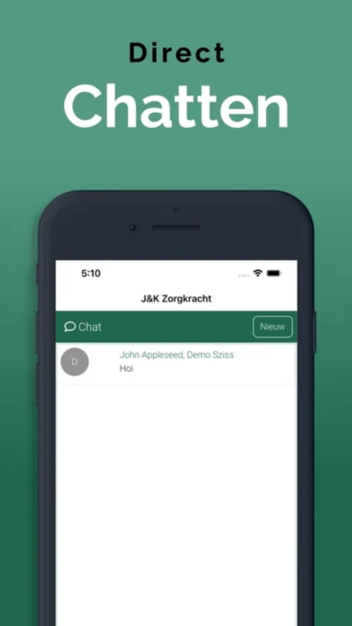 Bovendien kun je direct contact opnemen met J&K Zorgkracht via de Chat binnen deze App. Ideaal als je toch nog ergens vragen over hebt.