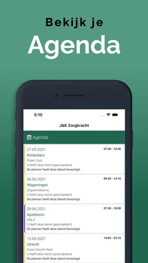 De App van J&K Zorgkracht is er voor jou, om te zorgen dat jij je werk zo makkelijk mogelijk kan doen!