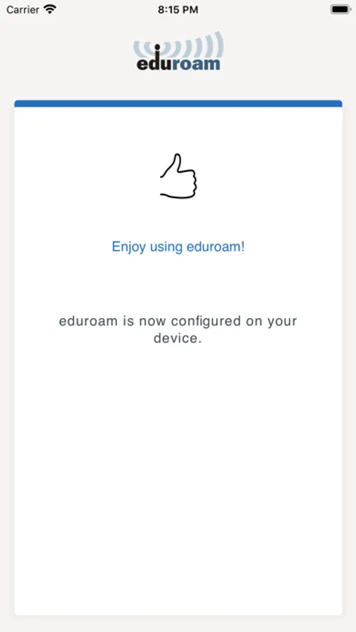 After selecting the right (eduroam CAT) profile and providing the user credentials the eduroam network should be configured and ready to use.