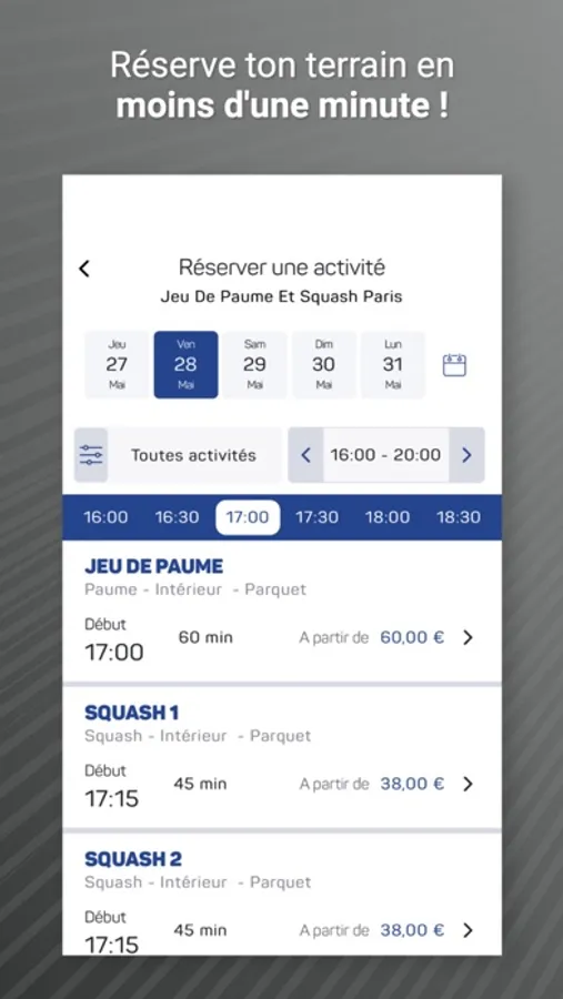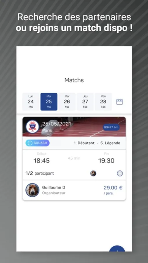 Organise tes matchs en 2 clics et rejoins une communauté de joueurs de squash et de jeu de paume autour de toi !