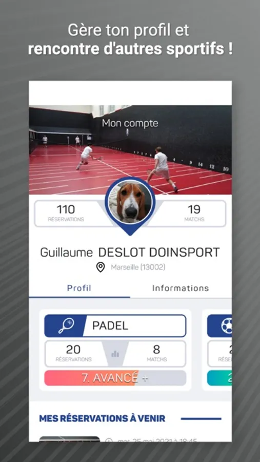 Fini la corvée de téléphone ! Avec l'application tu n'as plus qu'à accéder aux créneaux disponibles et à en choisir un. Le club recevra alors automatiquement ta réservation.