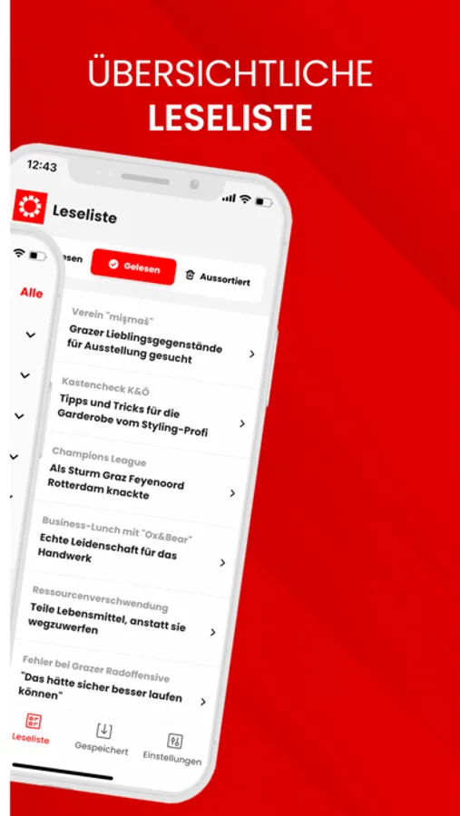 - Swiping. The articles appear as individual teasers. Swiping will take you from one article to the next. If you swipe to the right, the article will be marked with "Later". If you swipe to the left, the article will be discarded.