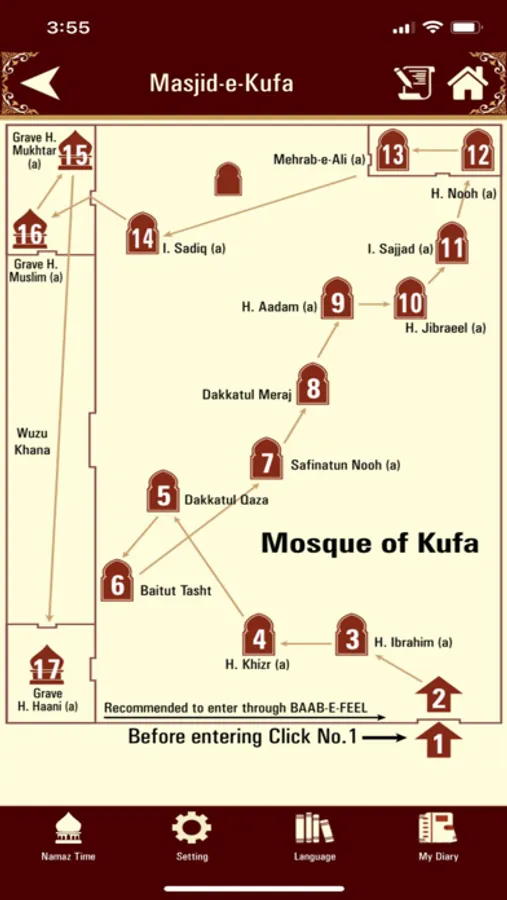 Interactive maps for Masjid-e-Kufa, Masjid-e-Sahla, etc.