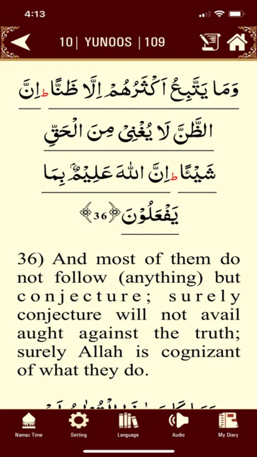 Additional features like Namaz Time, Qiblah, Azaan, Islamic Events, Tasbeeh Counter, Audios, Bookmark, Favorites, Recitation Records, etc makes this app a definite spiritual companion.