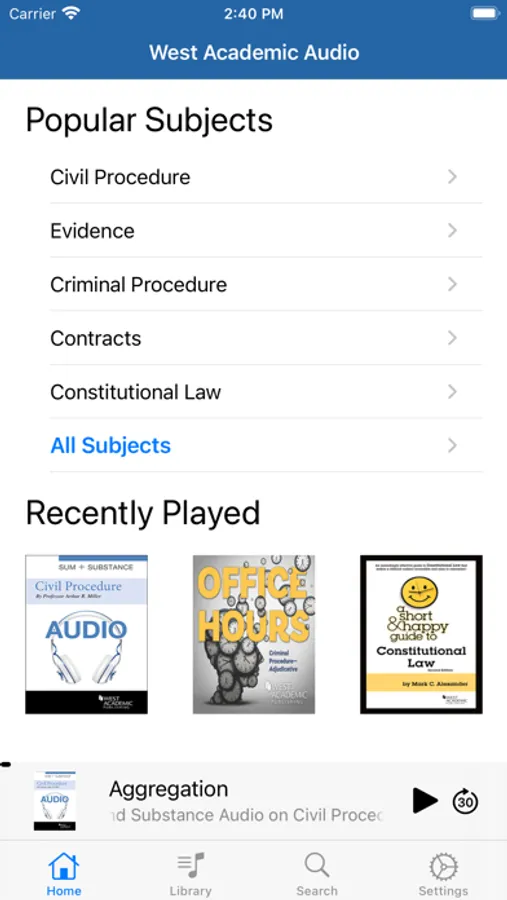 The West Academic Audio app provides offline access to audio content and audio lectures available through your subscription to West Academic Study Aids. Sign in to the app using your West Academic username and password.