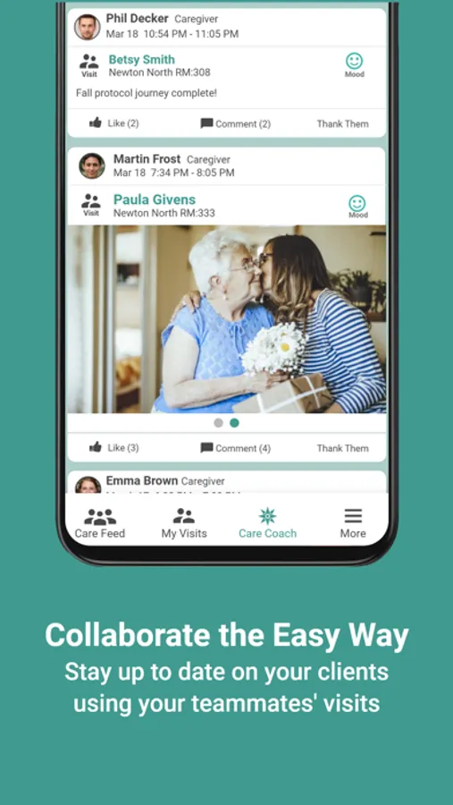 The CareValidate app makes care visible for everyone. The easy to use mobile app empowers caregivers with on-the-job coaching and provide an easy-way to collaborate with your team. You can share visit updates with notes and pictures and follow your clients or colleagues to see their updates. The Care Feed helps you to keep in touch with the care provided to the folks you care for. Invite family members see the care you provide and best of all - receive likes and rewards.