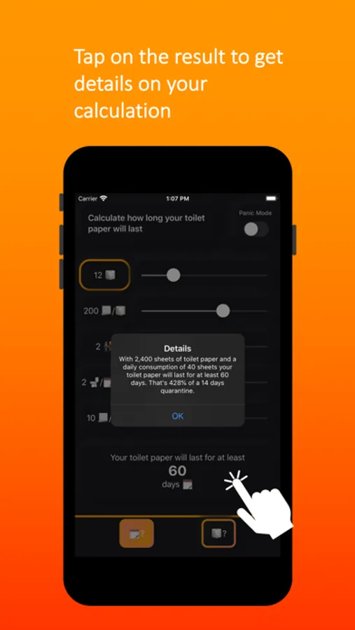 If you tap on the result, you'll receive detailed information on your toilet paper stock.