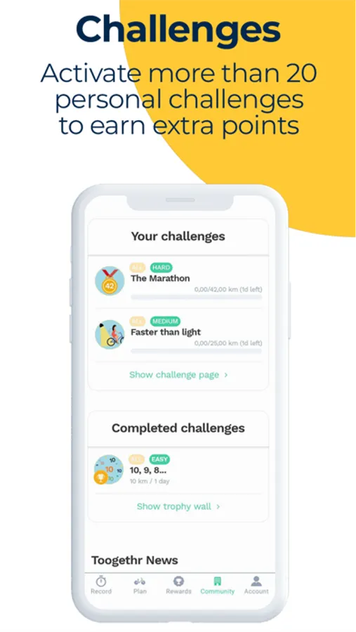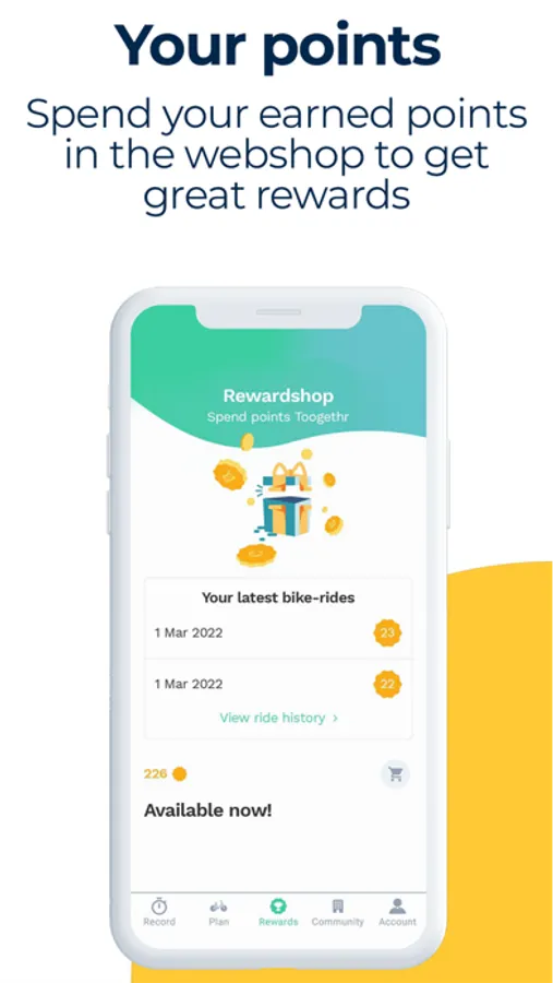 - Earn points with every bike ride you take. Exchange these points for great items in our Toogethr webshop!