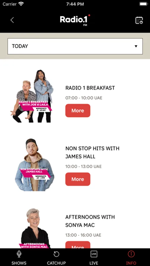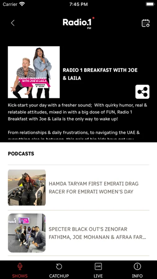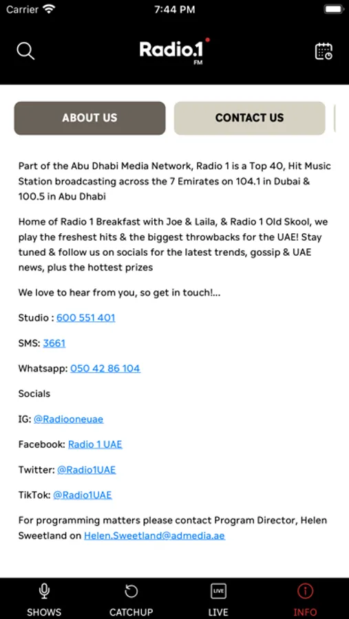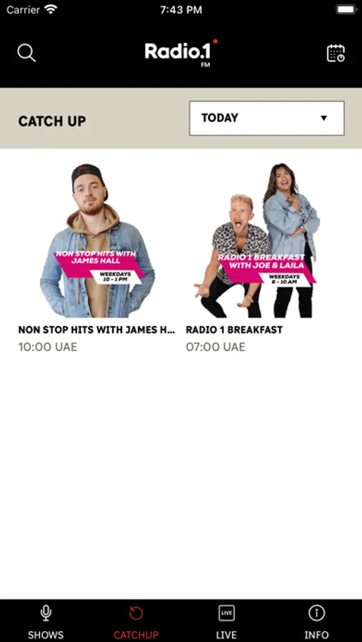 Part of the Abu Dhabi Media Network & Home of Radio 1 Breakfast with Dane & Chiara, & Radio 1 Old Skool, we play the freshest hits & the biggest throwbacks across the UAE!