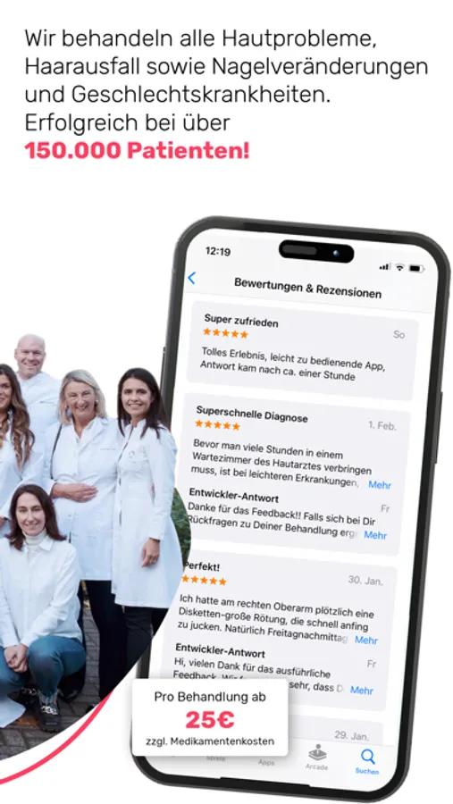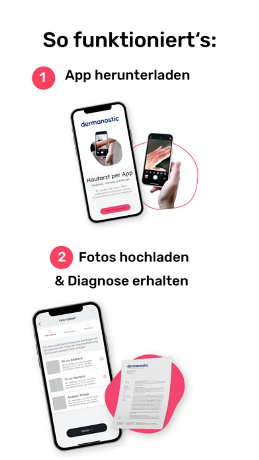 Dein online Dermatologe und Hautarzt per App. Innerhalb 24h erhältst Du Deinen Arztbrief mit Diagnose, Therapieempfehlung und Privatrezept.