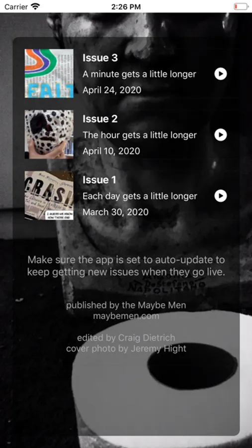 When ready, next issues will automatically download into the app as long as 'auto-update' is kept active for QuaranZine.