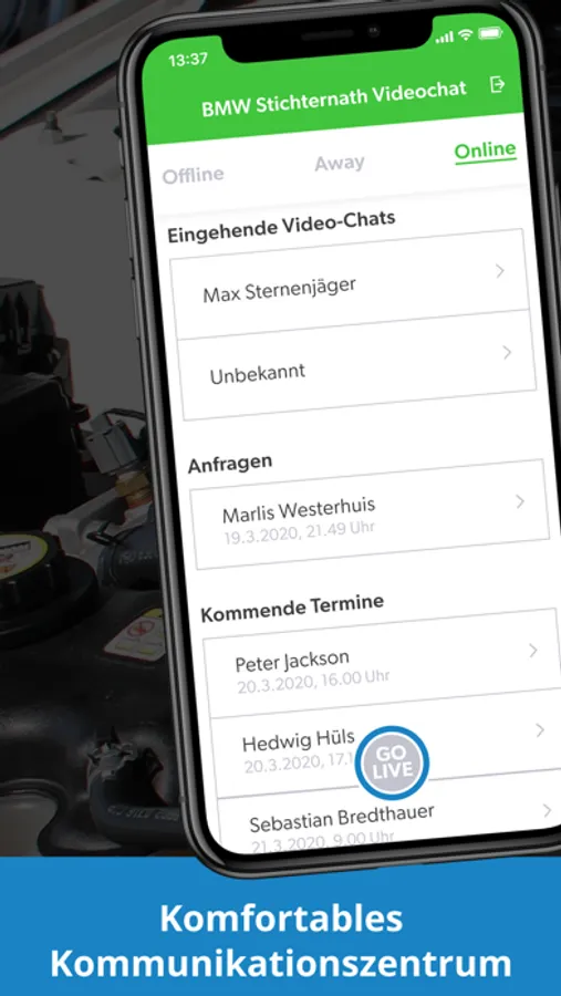 Face2Face by mobilApp is a video chat solution for car dealers. It supports private and group video calls and is optimized into the workflow of the car dealer.