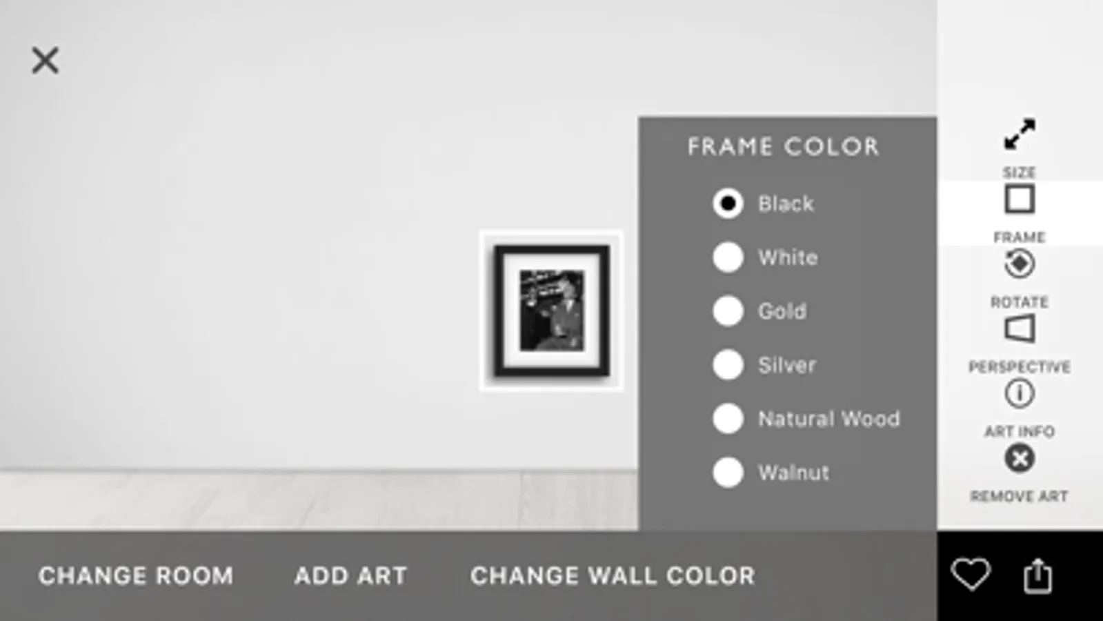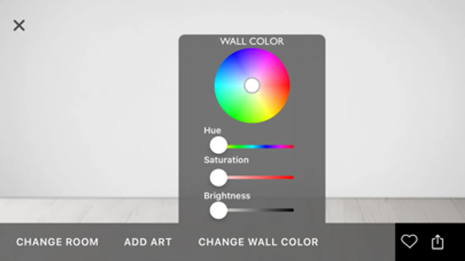 • Change wall color behind artwork with options of all shades, hues and brightness.