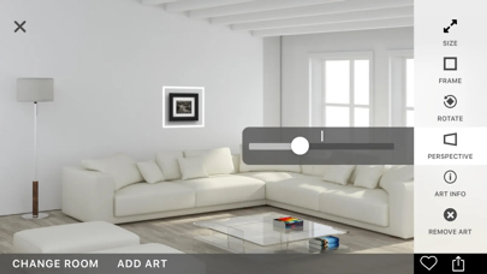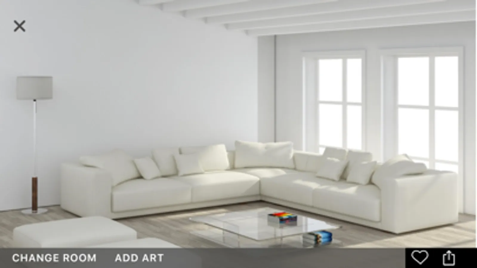 • Take, upload, or select a room to view artwork from our inventory on the wall.
