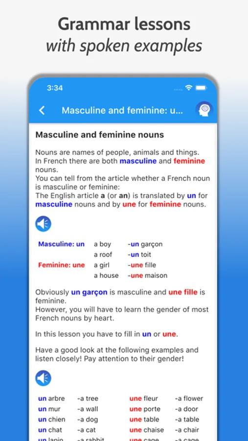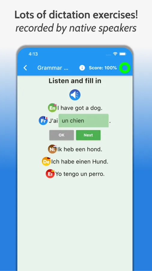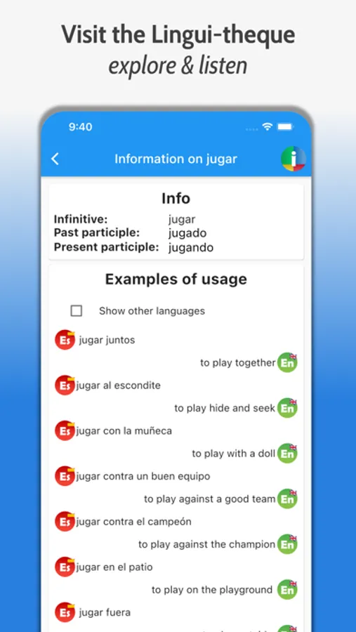 • Over 100.000 recordings of sentences, conjugations and examples, all recorded by native speakers!