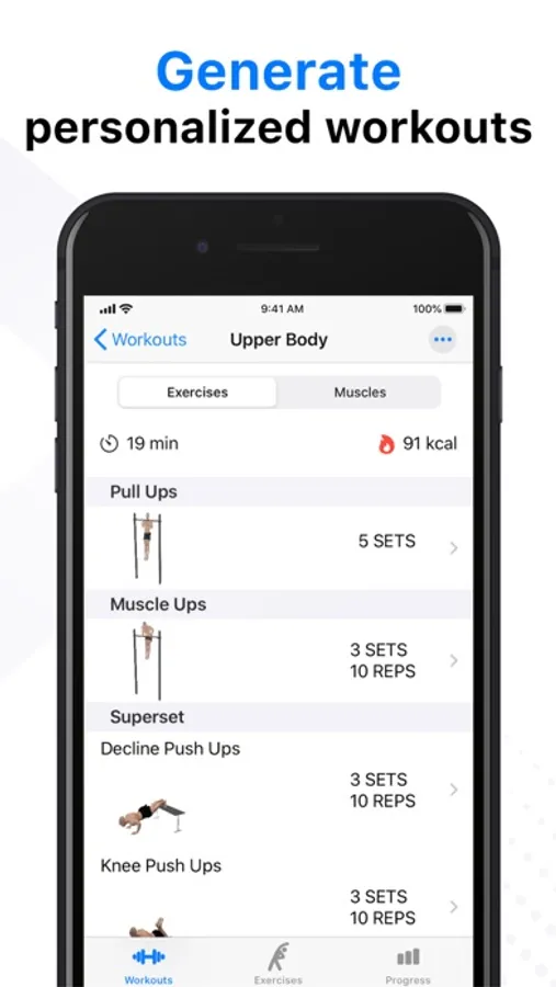You can workout at home, in the gym, outside in a park or anywhere you would like to. Track your progress, develop your fitness level, gain muscle mass or lose weight. In addition, view the exercises in augmented reality (AR). Whether you are a calisthenics athlete or a beginner, you will able to generate workouts accordingly to your level.